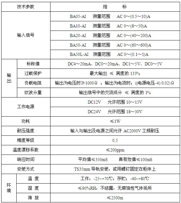 注:BA50L-AI/I(V)為交流剩余電流傳感器