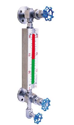 兩端采用三通法蘭連接,無安全裝置。由于口徑20mm,可測量較粘稠介質(zhì)的液位,測量范圍與顯示高度同等 |