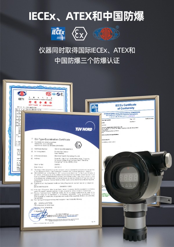 1,儀器同時取得國際IECEx、ATEX和中國防爆三個防爆認證