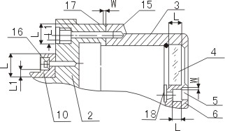 13、壓緊螺栓 14、引入導線(四芯電纜) 15、圓柱頭內六角螺釘 16、圓柱頭內六角螺釘