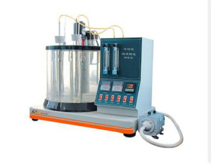 本儀器由浴缸、加熱裝置、溫度控制裝置、氣體供給裝置、試樣容器等組成。整機結構緊湊、造型美觀、操作方便。儀器采用數字溫控表控制浴缸溫度,數字溫控表顯示直觀,控溫準確。當浴溫低于設定溫度時,溫控表通過固態繼電器使加熱器工作,當浴溫高于設定溫度時,溫控表通過固態繼電器使加熱器停止工作,這樣使浴溫恒定在設定溫度上。再由攪拌裝置的作用使浴缸溫度均勻。使用空氣泵和流量計、氣體擴散頭向裝有試樣的量筒內定時定量地通入氣體,儀器裝有計時器,可方便地測定試樣產生泡沫的體積及泡沫消失時間。