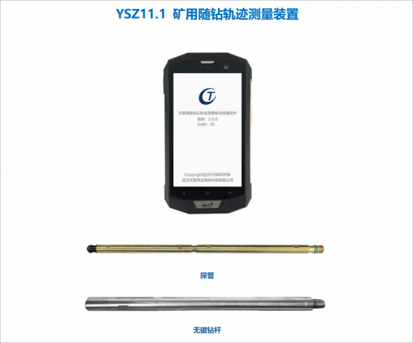 YSZ11.1礦用隨鉆軌跡測量裝置是一款智能化的鉆孔軌跡實時隨鉆檢測設備,儀器主要由無磁鉆桿、探管和礦用智能手機組成,探管安裝在無磁鉆桿內,無磁鉆桿兩頭分別與礦上鉆桿和鉆頭連接,實現邊鉆進邊測量鉆孔的空間軌跡和鉆進深度。