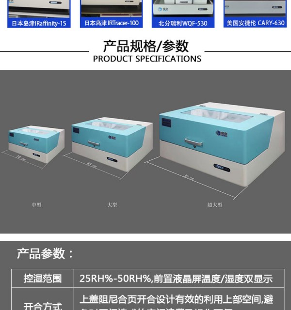 ▲ 控濕范圍:25RH%— 50RH%,前置液晶屏 溫度/濕度雙顯示
